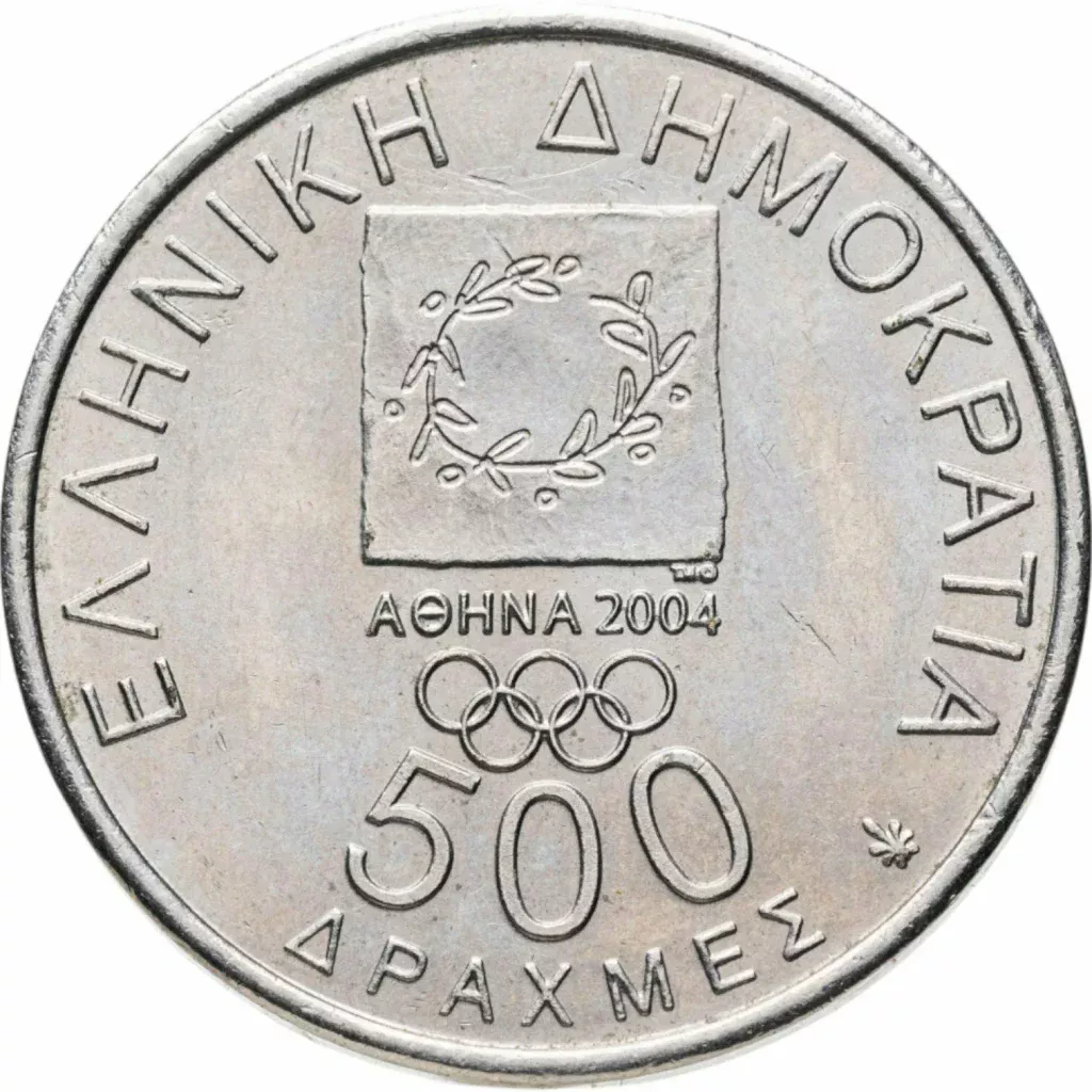 En van deze zes was Griekenland het land dat de eerste herdenkingsmunt van 2 euro in de geschiedenis sloeg. Voor deze gelegenheid, en ter gelegenheid van de Olympische Spelen die dat jaar van 13 tot 29 augustus in Athene werden gehouden, koos Griekenland voor een sportief motief voor deze eerste munt.