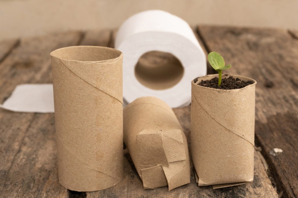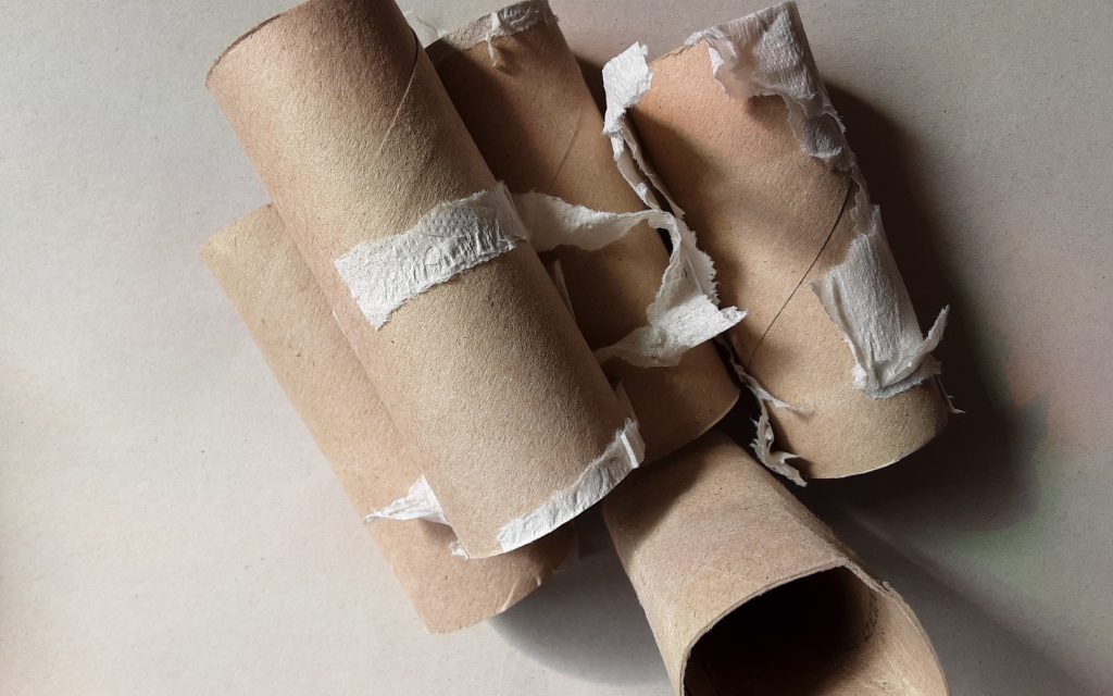 - De eerste stap is het verzamelen van de kartonnen rollen van toiletpapier en controleren of ze allemaal even lang en breed zijn.